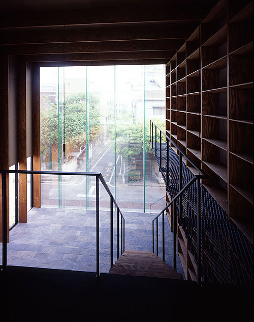 As material that consist an open space that is 6m in height, 5.5m in width, 14m in depth, we choose thin engineer-wood (38mmx287mm). Main theme for this architecture is to bring out a sense of mass and material, which were denied by modern architecture which pursued "white, flat wall" as a style. We intentionally left the wood grain of mold on the surface of concrete, and choose textured stones and irons.