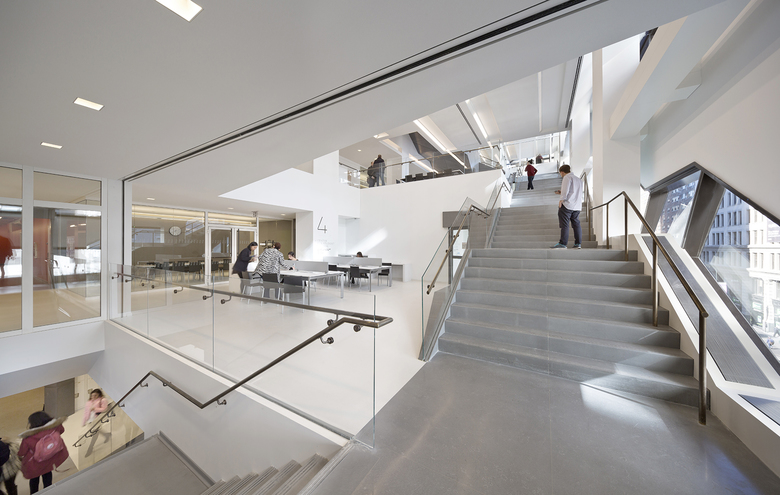 With its 230,000-square-foot, seven-story campus center (located in the building’s base) and 130,000-square-foot residential tower, the University Center reimagines the organizing elements of a traditional campus, from quads to classrooms and living quarters.Vertical, horizontal, and diagonal campus pathways work together to facilitate movement through the building, while increasing opportunities for interaction among students and faculty from across the university. Academic spaces are flexible and easily adaptable, and can be renovated or reconfigured with minimal impact on power, data, or lighting to meet changing needs.