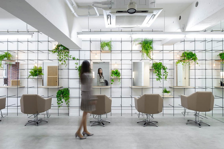 “Familiarity” rather than “newness”, “casual” rather than “ceremonial”, ”foundations” rather than “the finishing”. With this in mind, we selected the materials for this interior. In the area where hair styles are set, reinforcing bars were used to create a lattice work within which were placed plants that are suggestive of hair styles such as curly hair, afros or a beautiful lady of nobility. It’s our desire that when viewed from the street, passersby can feel the openness of the atmosphere such as that of a 3D image of a park.