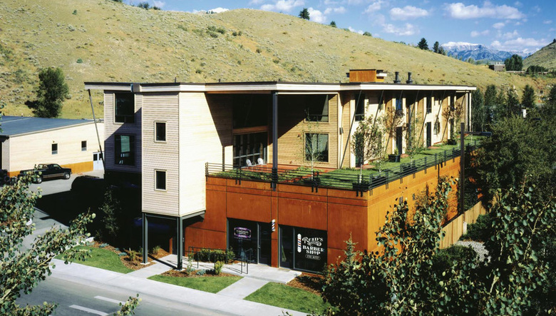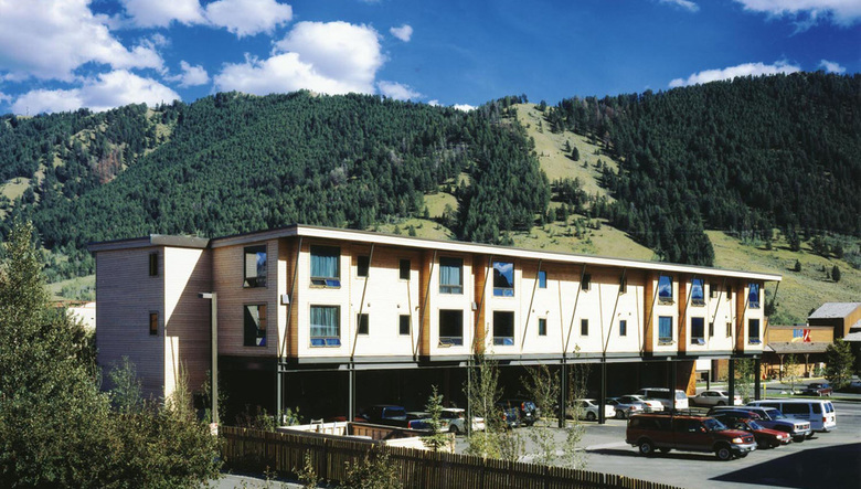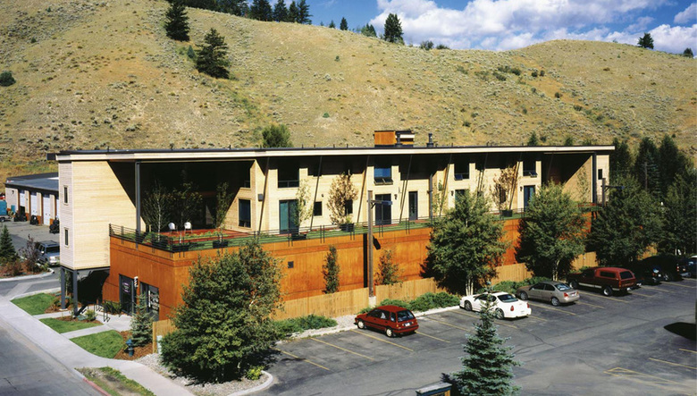 The clever plan and well-articulated exterior are matched by a host of sustainable design elements. The rooftop garden, which improves thermal efficiency and reduces storm water runoff, affords residents an above-street-level oasis. Beneath that sod roof, non-chlorofluorocarbon polyurethane foam serves as roof insulation, further improving energy efficiency. The building also features large hollow double-pane metal windows with insulated low-E coating that bring copious natural light to the interior spaces while maximizing views of the adjacent butte, and at the same time capture solar radiation at peak times and minimize its loss. Motion-detectors control fluorescent light in public corridors to avoid wasting electricity, and the choice of durable, low-maintenance building materials ensures the building will continue to be environmentally responsible over time.