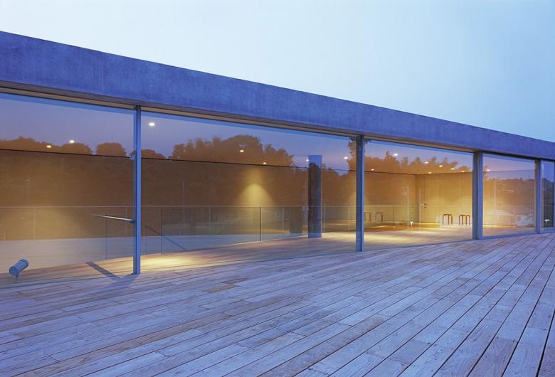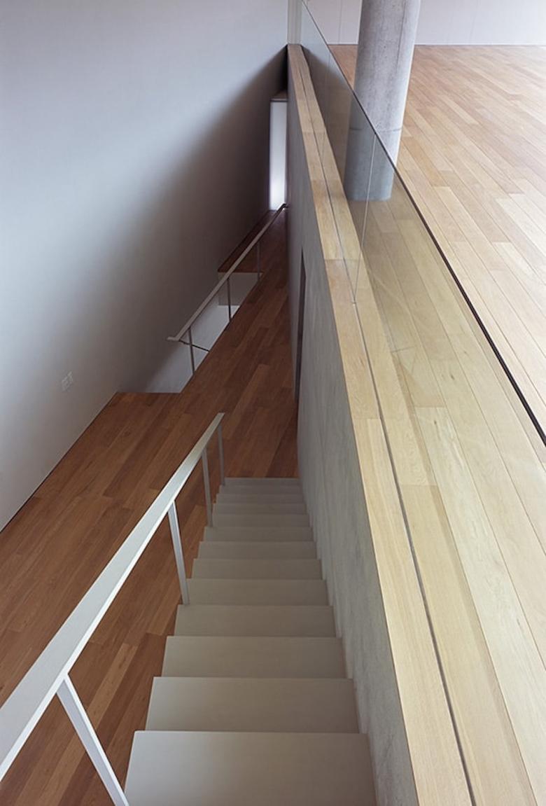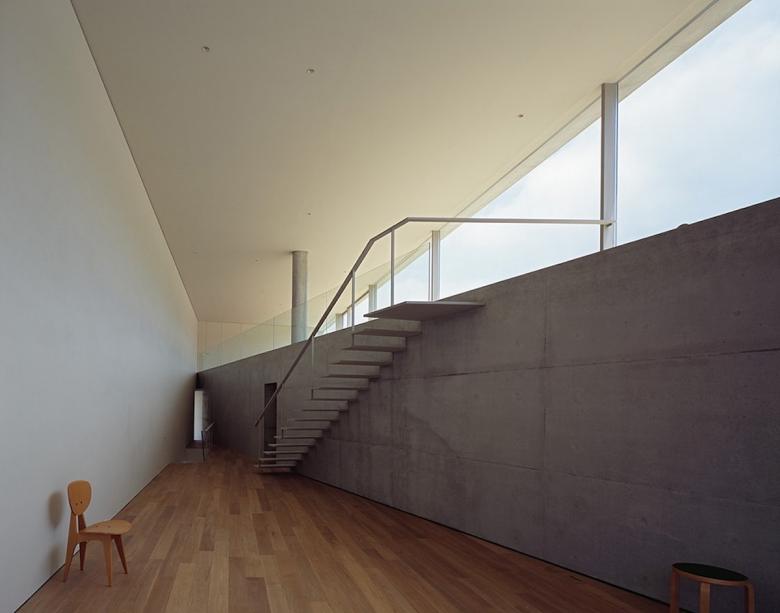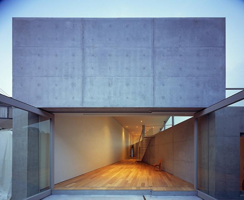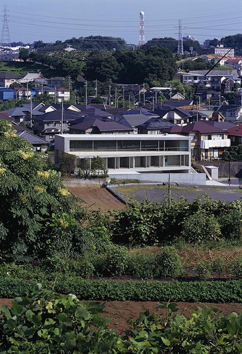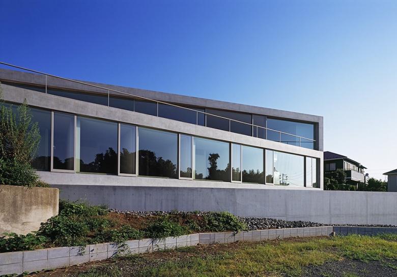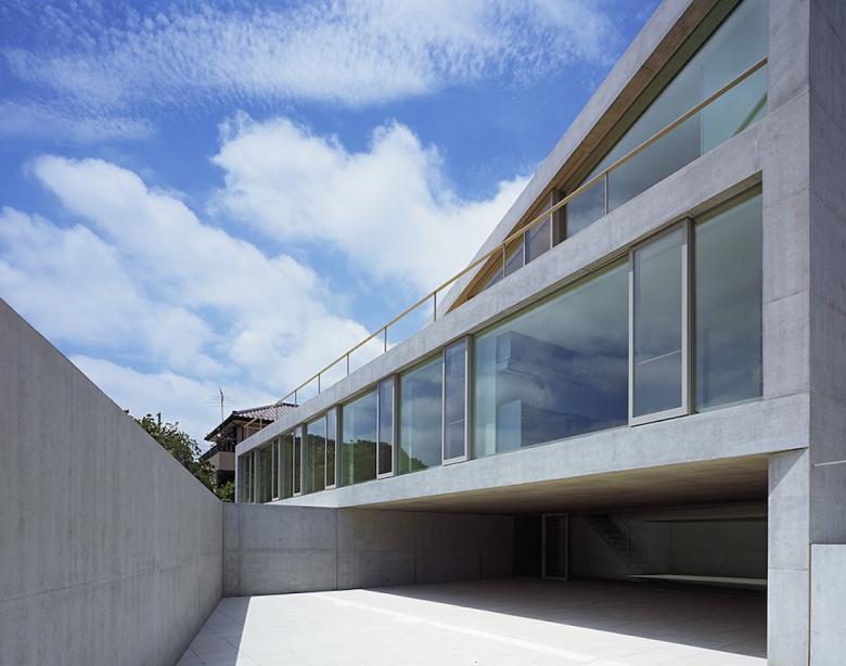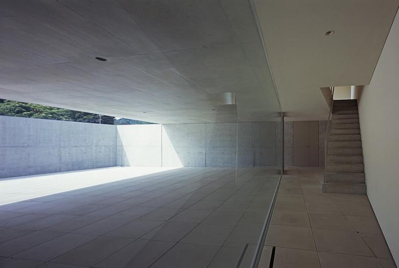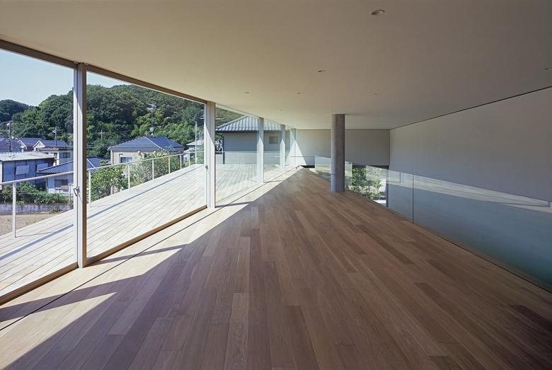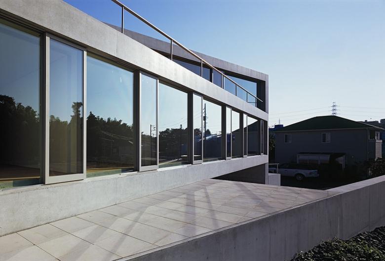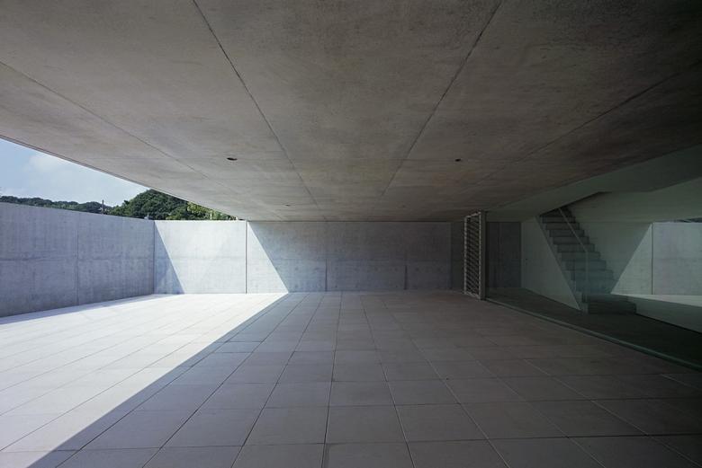 Adopted was single architectural operation. That is, to shift the upper and the lower parts of a three-layered rectangle volume, half buried in slope topography with almost three meters of vertical gap, by its short side. It would form italic “N” shape which provides unchanging woodland scenery in the south and creates a large terrace, while securing privacy and natural light by creating three-dimensional offset against the adjacent land which is currently vacant and used as parking lot or farmland but would be packed with houses in the near future.