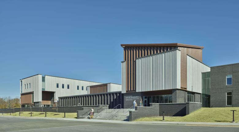 Springdale is the fourth largest city in the state located between Bentonville and Fayetteville in northwest Arkansas. Between 1990 and 2010, it experienced a 133% growth in population. Designed to meet the growth for the next 20 years, the new 122,481-square-foot municipal complex houses a state-of-the-art police facility and a district court and includes partial renovation of the existing city administration building.