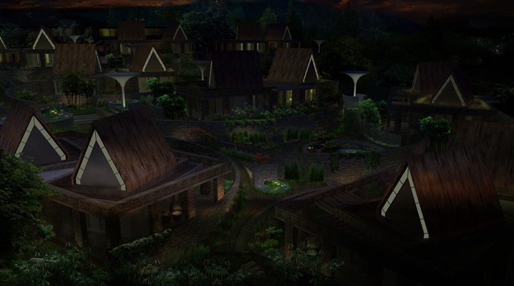 The project is located at the edge of the Jim Corbett National Park on the foothills of the Himalayas in Uttatrakhand, India. An eco-tourism destination, presently, every season more than 70,000 visitors come to the park from India and other countries. It is intended to be a high-end green development for tourists. The delicate warm temperate ecology of the region is threatened by two types of natural calamities-landslides and forest fires. Both these ravages are further exacerbated due to uncontrolled erosion during the wet seasons, seasonal denudation of foliage during the hot and dry seasons and anthropogenic deforestation and environmental degradation. As a model development for green resorts, the project makes use of various strategies for soil stabilization, waste and water management and bio-diversification like bioswales, etc. The ecological master planning followed a 3-step approach.