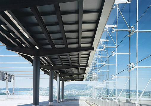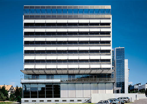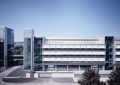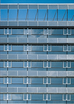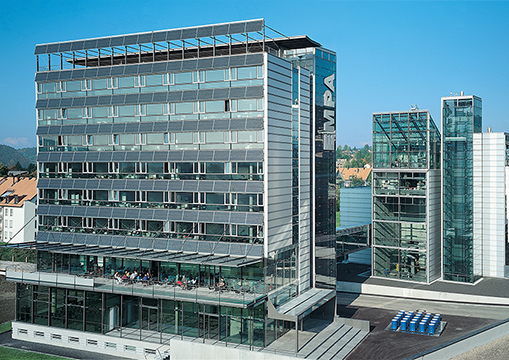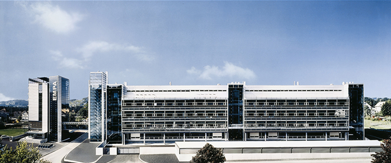 Swiss Federal Materials Testing and Research Agency. A complex integrated into the surrounding urban planning concept of the city of St. Gallen, and consisting of three clearly distinct volumes. Façade parapet elements fitted for photovoltaic and solar energy conversion.