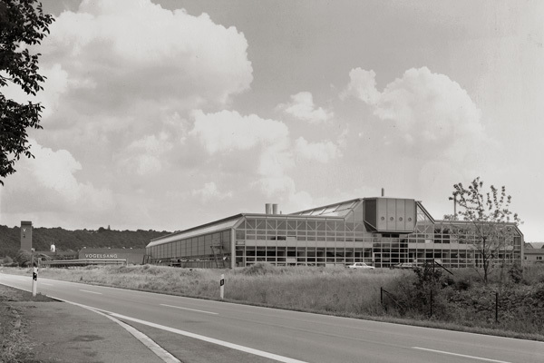 Located in the charming riverside landscape of the Nechar Valley, this paint and lacquer production center was designed with expansion in mind, with closed façades along its long axis’, and glazed open ends.
