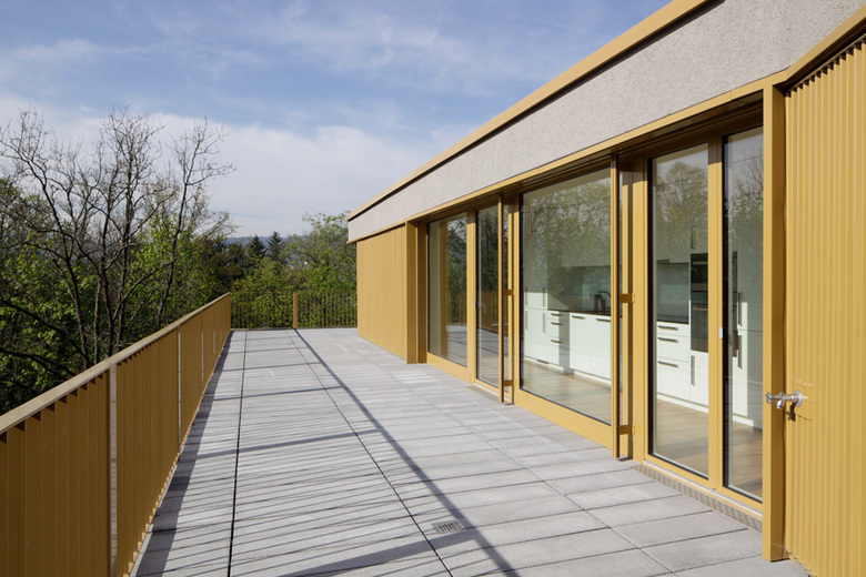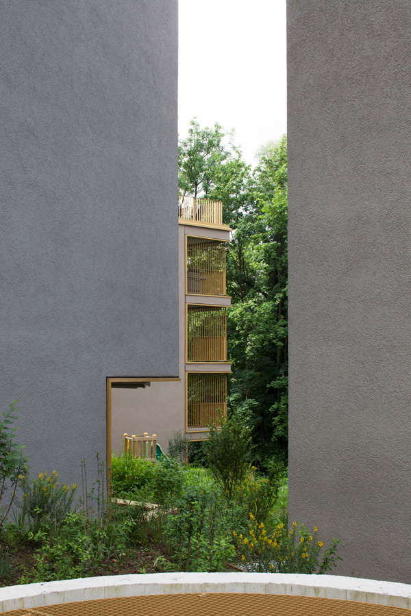 On the newly cleared site, seven individual apartment buildings were built, all of which are connected below-grade by a continuous parking garage with 63 tenant and 6 visitor parking spaces. To the east, the underground car park is accessed via a ramp which also accommodates disabled access to the project. Pedestrians will reach the development via stairs and serpentines (ramps with hairpin switchbacks) from Winzerhaldenstrasse. Surface paths embedded into a garden landscape connect the seven buildings and are inspired by natural vegetation all the way to the banks of the Limmat beyond. Each flat in the development enjoys an unobstructed view towards the river bank, and generous wooden-metal window fronts make the transition from nature to interior space seamless. Despite the high density and maximization of the site, a high quality of outdoor space was achieved, and the relationship to the natural landscape is equal amongst all 67 flats. The entire project was executed and certified according to the Minergie P-ECO Standard.