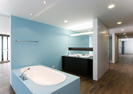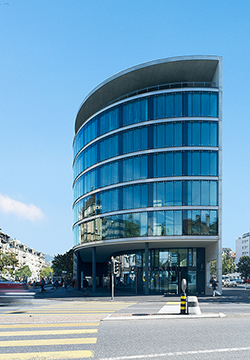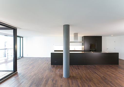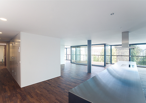 Prominent urban development on Pilatusplatz in the city of Lucerne. Commercial and office use along the street edges, with a residential wing containing high-end apartments inserted in an internal courtyard.