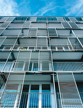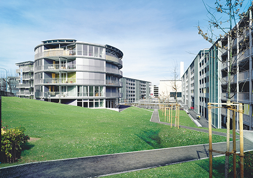 A residential development with cooperative living, housing 126 flats ranging from 2.5 to 6.5 rooms, studios, a kindergarten, daycare facilities, and common rooms for residents. The two 6 and 7-story elongated buildings reflect the varying urban textures of the surroundings, and create a generous half public residential courtyard.