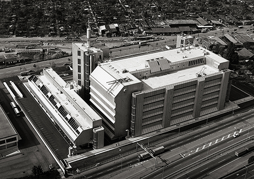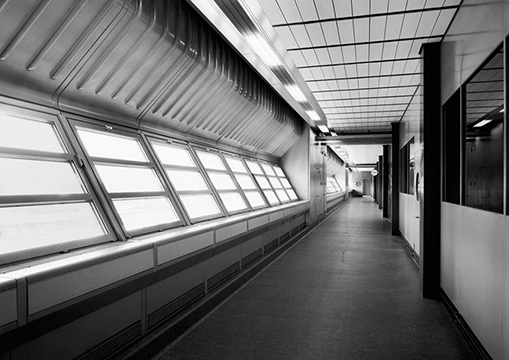National and international telephone exchange center with four-story employee services building. Fist use of self-supporting structural façade and stamped panels in Switzerland.