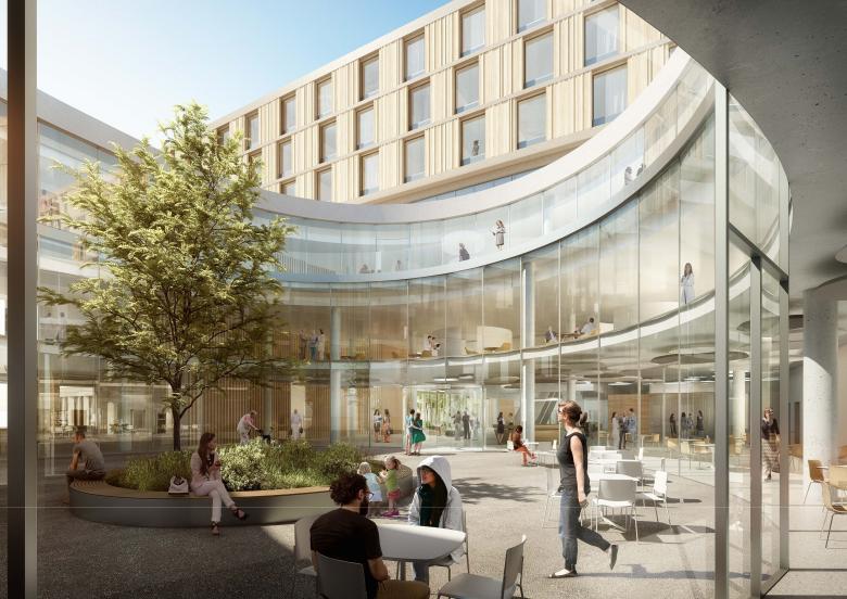 In Baden entsteht direkt neben dem vorhandenen Spital das neue Kantonsspital. Mit dem Spitalgarten binden wir das neue Gebäude in die Landschaft ein und ergänzen den vorhandenen Südpark.