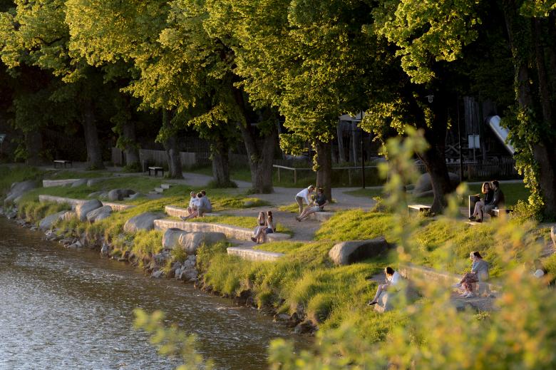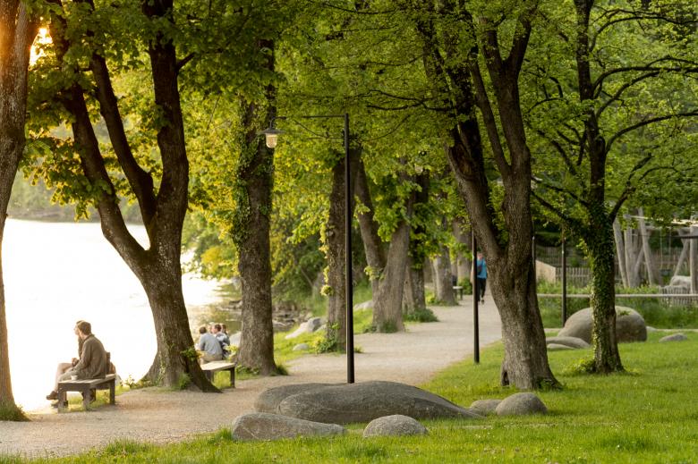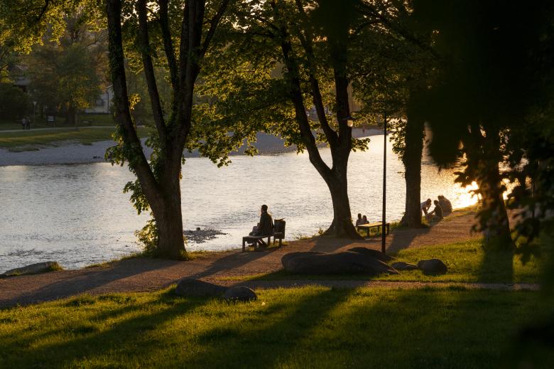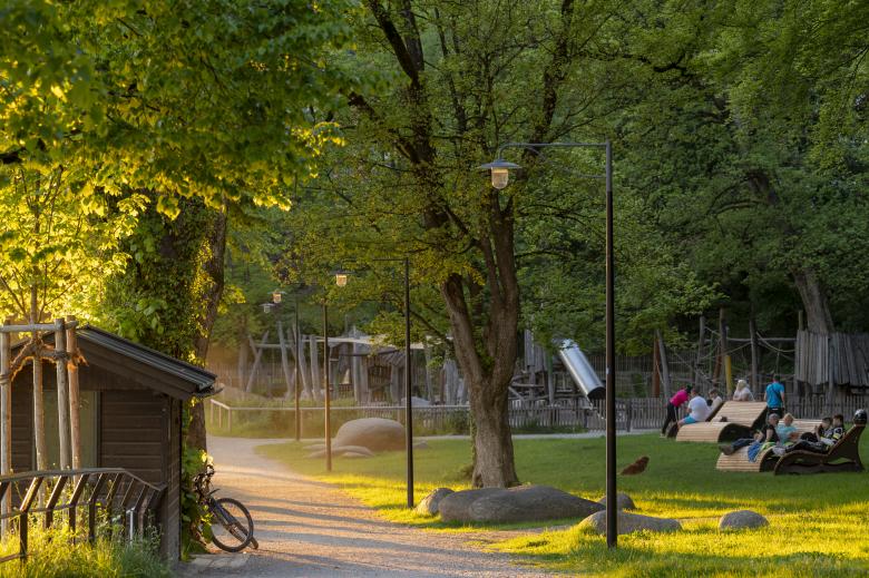 Der Entwurf für die Parkanlage Taubenloch in Bad Tölz sah vor, den bestehenden Park visuell zu öffnen und einen direkten Bezug zur vorbeifließenden Isar herzustellen, indem parallel zur Uferkante verlaufende Hecken und Zäune entfernt wurden. Zudem wurde die Uferböschung für Besucher zugänglich gemacht und mit Sitzmöglichkeiten in Form von Findlingen und Sitzmäuerchen ausgestattet. Um den wertvollen Baumbestand durch die Arbeiten nicht zu beeinträchtigen, wurde Substrat abgesaugt, Deckschichten händisch eingebaut und Schraubanker als Fundamente für Mauern benutzt.