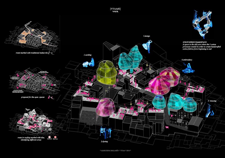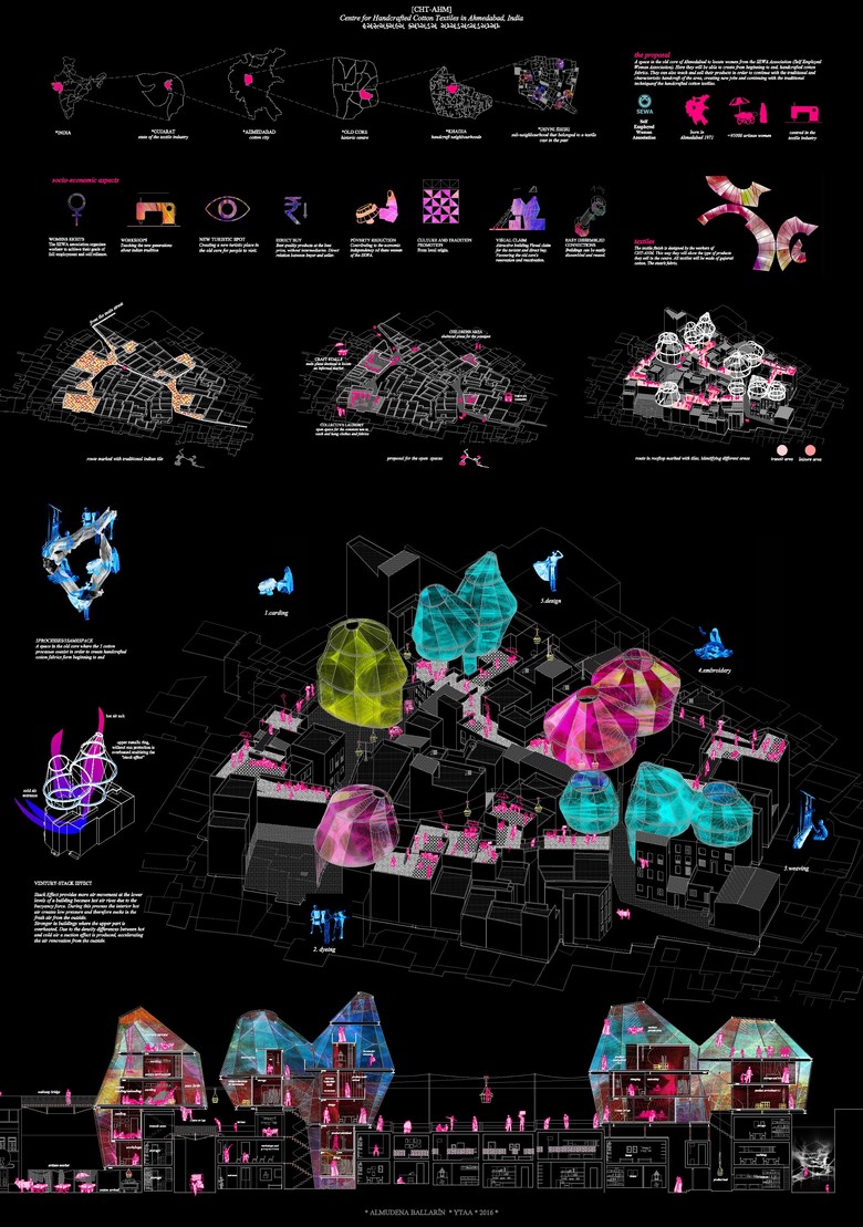 "The CHT-AHM is a new Centre in the old core of Ahmedabad, capital of ths Gujarat (top cotton producing sate). to visit, learn and buy the best quality cotton products, seeking to reactivate and embellish the area, creating new jobs for the Self Employed Woman Association and continuing with the traditional technique of the handcrafted cotton textiles."