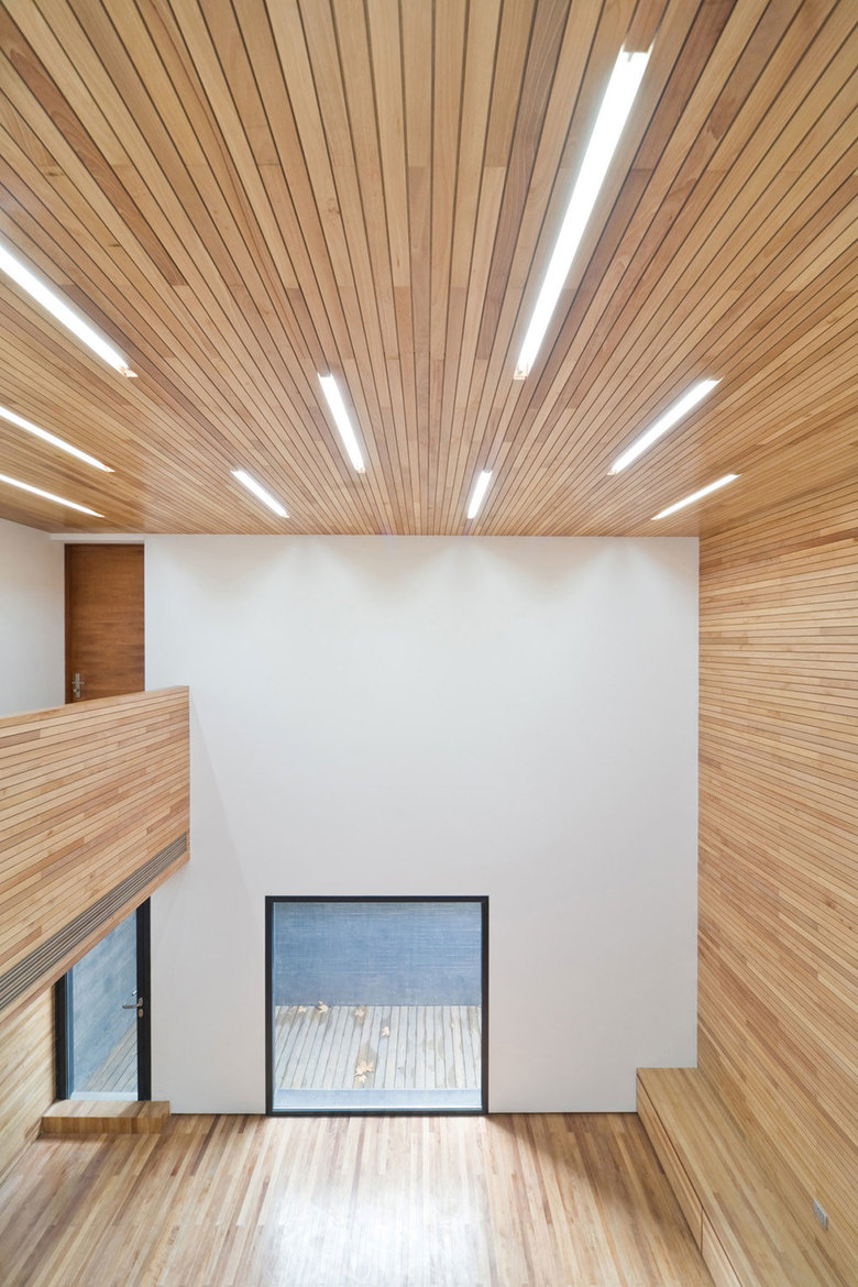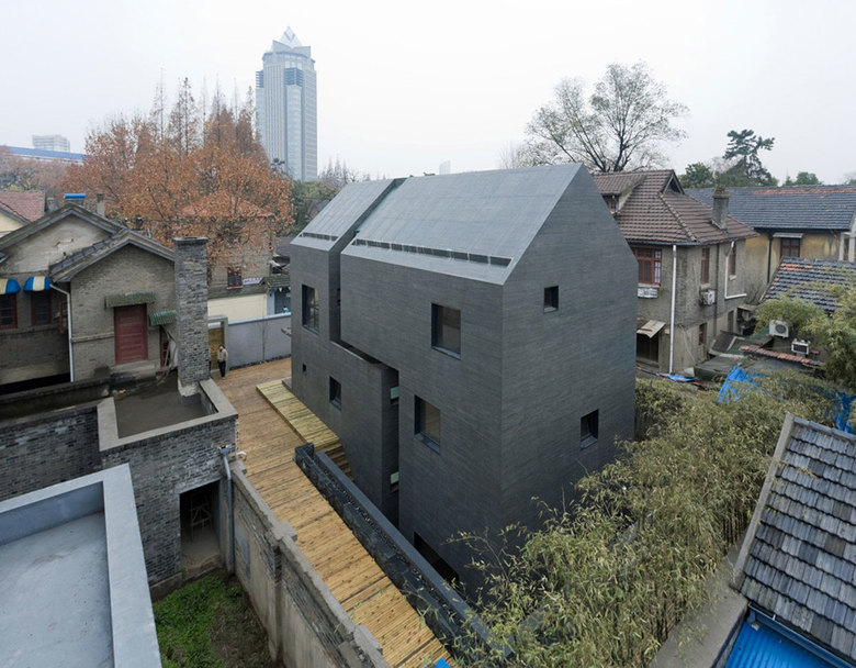 Fits to its historical context formulated in begining of 20's in centre part of Nanjing city, Slit house express itself in harmony with surroundings in the new form of concrete facade. The entir structure & facade even roof are made from concrete with 5cm horizontal wood textile strip which shares the same scale with neibour buildings of brick built almost 100 years ago. Even we used almost half of world's cement in China, Slit house is the first real concrete building in Nanjing, the city which built also 1300 highrise concrete structure towers in last 25 years.