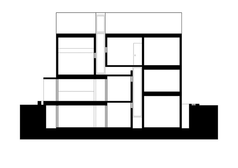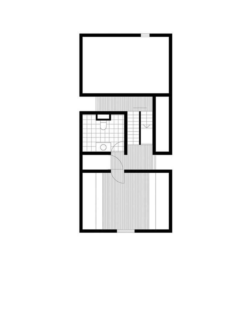 Showing the tranparency of house in its public part with deep slit, Stail is used in this project to link two parts which has half floor height difference, then made 2 floor height living area and 1.5 floor dining area. With limited openings to east & west nearby neibour.
