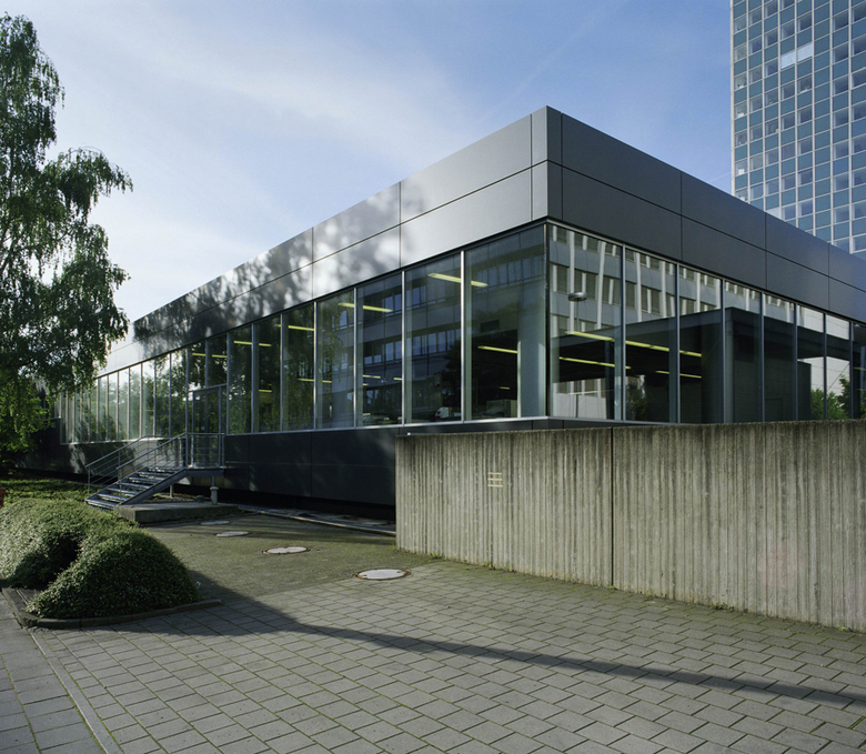 Die Sanierungsmaßnahme des Mitarbeiter-Restaurant als vom öffentlichen Zugang abgesetzter L-förmiger Appendix des Sockelgeschosses setzt 2 divergierende Ziele um: zum einen die umfassende Erneuerung von Restaurant und Großküche als Anpassung an heutige Besucherfrequenzen (Verdreifachung der Essensausgabe); zum grundlegende strukturelle und gestalterische Überarbeitung / Erneuerung der Gebäudehülle unter Behebung aller gravierenden baulichen Schäden der fast 50 jährigen Nutzungsdauer.