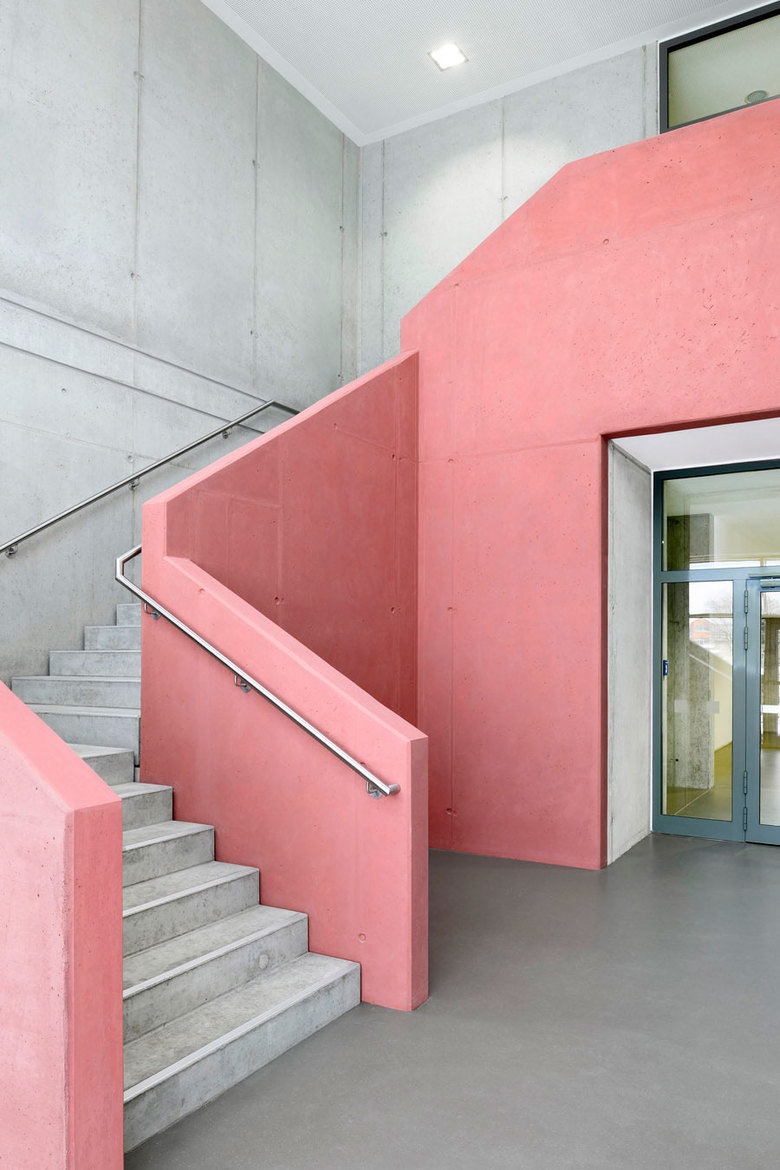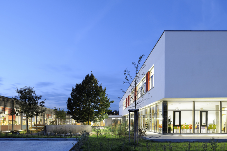 Bereits unser erstes Gebäude für die Montessori-Schule in Herzogenaurach aus den Jahren 2000 bis 2001 transferierte diesen Lernansatz eines „begreifbaren“ Hauses in gebaute Realität. Die Erweiterung der Grundschule zur gebundenen Ganztagsschule als Grund- und Hauptschule schließt knappe 13 Jahre später nicht nur baulich sondern auch gedanklich den Kreis.