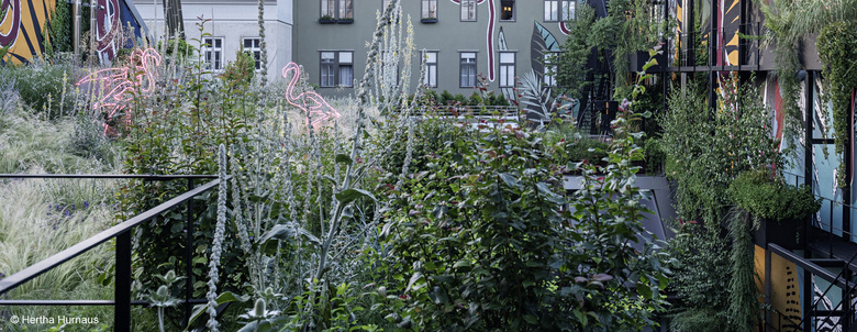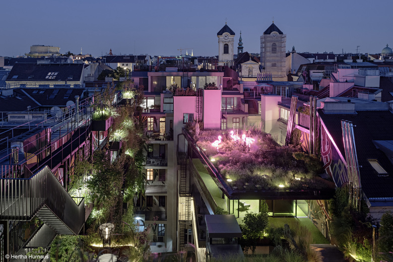 In the centre of Austria’s capital, BEHF Architects has implemented an extraordinary biotope of nature and art. At the same time, the architects have improved the microclimate and the quality of living in apartments that face the courtyards. An extensive green roof of the ARTSPACE and the use of vertical greening for firewalls reduce the temperature by up to 4 degrees.
