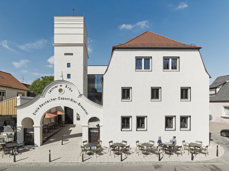 Die Geschichte der Brauerei soll in der neuen Nutzung spürbar und erkennbar bleiben: Das Eingangstor mit dem charakteristischen Schriftzug „Lechner Bräu – Erste Baunacher Export-Bier-Brauerei“ empfängt die Menschen weiterhin und geleitet sie in einen ersten Hof, wo sich rechter Hand der Eingang zum ehemaligen Gasthaus befindet. Ein Eiscafé lädt zum Verweilen ein. Der Mälzereiturm ist heute Ausstellungs- und Aussichtsturm. In Anlehnung an die für Brauereien typischen großen Fassadenöffnungen im