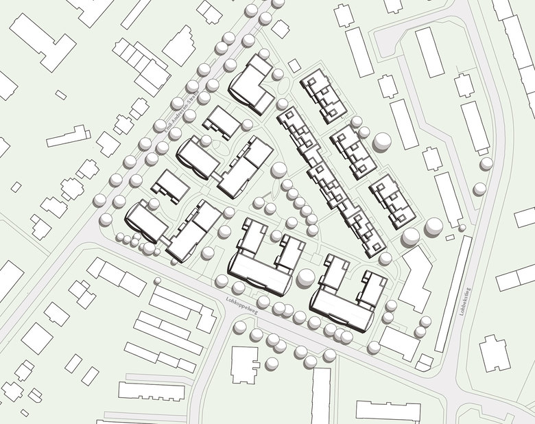 Jahnkeweg – Neubau gefördertes Wohnquartier: Ein Hochhaus mit arrondierendem 4-5 geschossigen Wohnhof