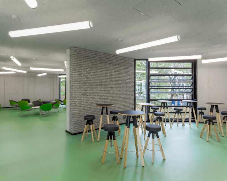 Selbstlernfläche mit Schülercafé und Dachterrasse