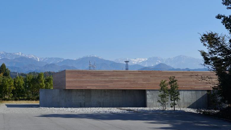 立山連峰を稲田越しの正面に見晴らす、北陸富山の敷地。