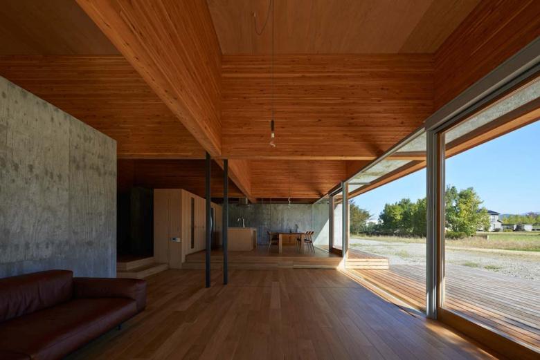その恵まれた周辺環境へと閉かれた伸びやかな空問と家族の親密な繋がりを育むように程よく閉じた空問。その性格の異なる2種類の空問が重なるような平面構成を求めた。
