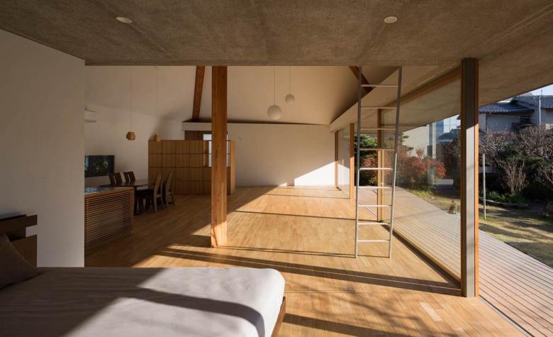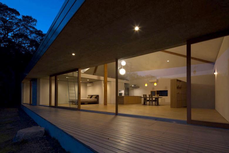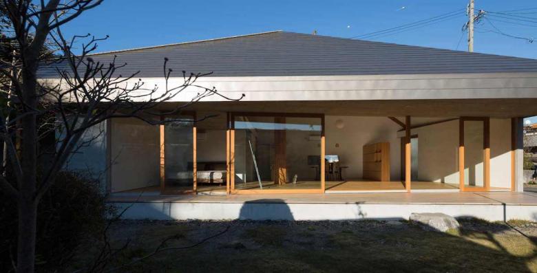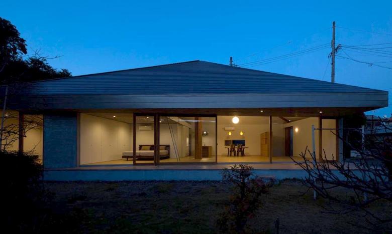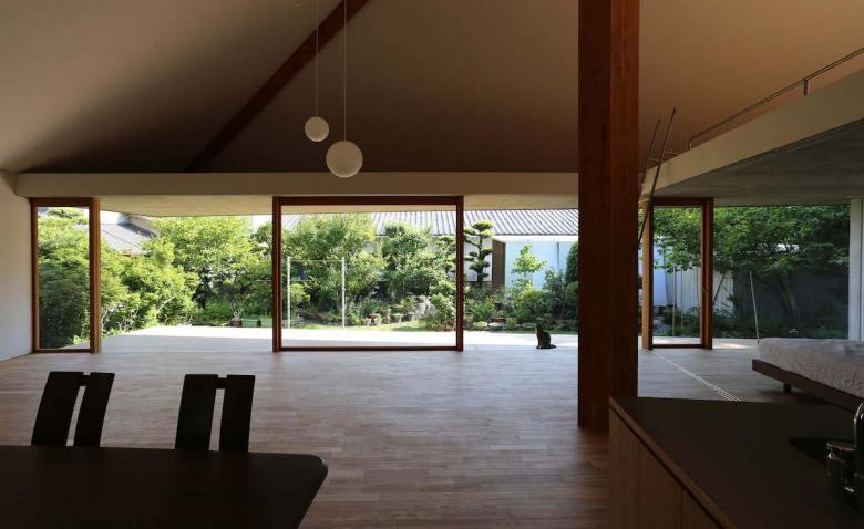 我々は、穏やかな東海地方の風土に、一本の傘を差し出したのだ。開かれた傘は環境条件によって大らかにゆらぎ、その下には周囲から自然と人々が集まり来て、そして伸びやかに暮らしていくことだろう。東京在住の、建て主にとっては長男でもある建築家は、そんな未来の様を思い描いている。