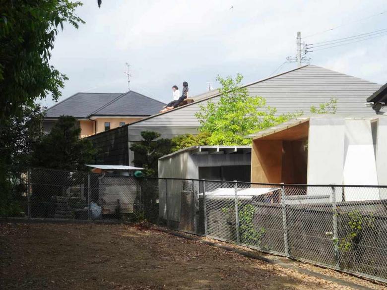 ここで新しく家を建て替えるに当たって、内・外を明確に壁面によって規定する従来型の家屋の形式はふさわしくないように思われた。かといって、心理的な“家”としてのまとまりや中心性がないのも、小さな子供から祖父母まで三世代が暮らすことになる建て主家族には馴染まない。