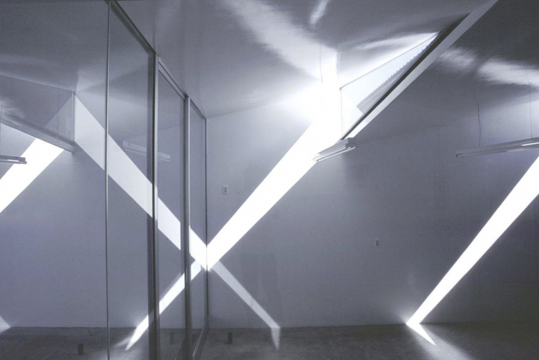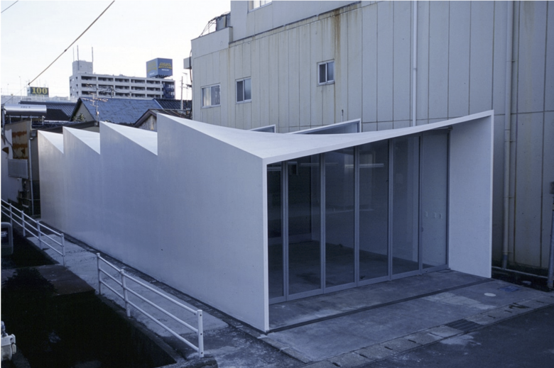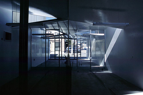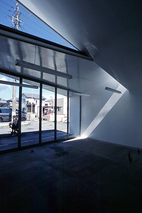「とりりん」は惣菜と精肉を販売する店鋪である。建築は最初の約5年間のみ初期用途のために使用されるが、その後は他の用途に転用されることになっている。より大きな旧店鋪で使用していた厨房器機群を引き続き使用するため、最大限効率的に床面積を確保することが求められた。敷地は北向きで鰻の寝床状に細 長く、暗く凹んだ印象であった。建築費は1,500万円。 われわれが提案したのは、軽量鉄骨を主材とする用途フリーの薄いチューブ状の建築である。 角パイプ(100×50×3.2m)弱軸使いによる薄い見付厚の門型フレームをつくり、この上辺をグラデーショナルに変化させながら反復することでHP曲面シェルの屋根面を持つユニットを形成する。これを4ユニット並置させて、ユニット切り替わり部に採光スリットとトラスを持つ、強固で明るい薄いチューブ状の建築が完成した。 薄い構造厚は有効床面積を最大化し、逆に建築全体の形状として強固であるため鉄骨量は最小化された。また、ユニット化によってディテールが反復されるため、工期も短縮され(実質工期は2ヵ月)、工費の低減が実現された。 屋根側のHP曲面で拾われた自然光はスリットから室内に取り込まれ、天井側のHP曲面のよって柔らかく室内全体に拡散される。室内仕上げは清掃性と光の効率的な反射を意図し、VP-N95の全ツヤ塗装としている。 用途フリーということもあり、われわれは店鋪の設計を行ったというよりも、明るく気持ちのよい「環境の質」をデザインしたのだと考えている。