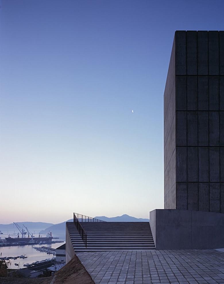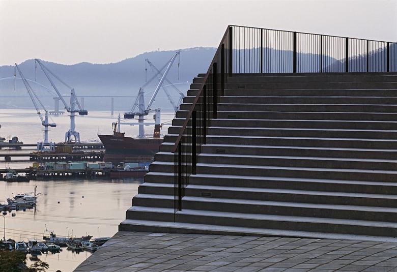 具達的には、3層の居住ボリュームを半ば崖にオーバーハングするように配置し、瀬戸内の豊かな景観へと開けたその屋上を、高い位置にある北側背面の道路から、大階段を介して直接にアプローチ可能な「十分な広さを持ったパブリックスペース」として地域に開放したのである。