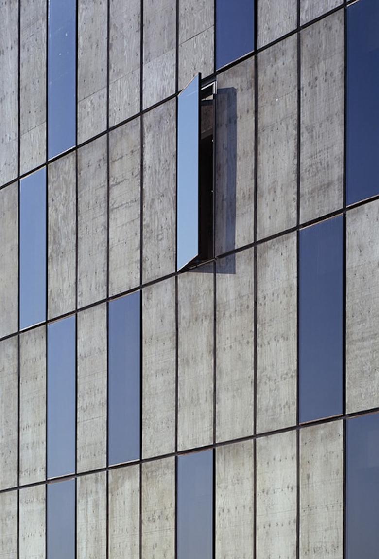 特徴的な崖上に大きく跳ね出されたキャンチレバーは、最大限大きな屋上広場を生み出すことと、脆弱な崖地に応力が伝達されないよう、杭を崖端から必要なだけオフセットすることで導きだされた形式だが、これを可能にしたのは3層に跨がる連続構造壁面と、跳ね出しの反対側でカウンターウェイトとして作用するタワー棟の存在である。