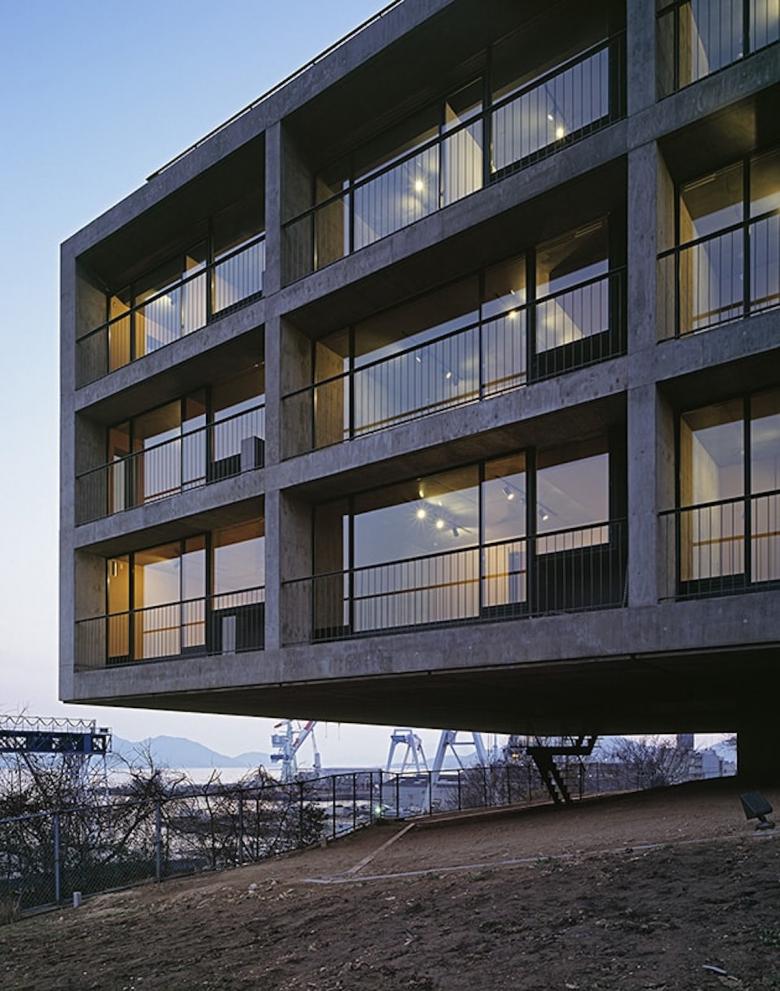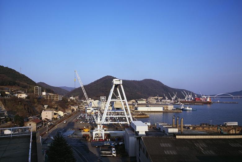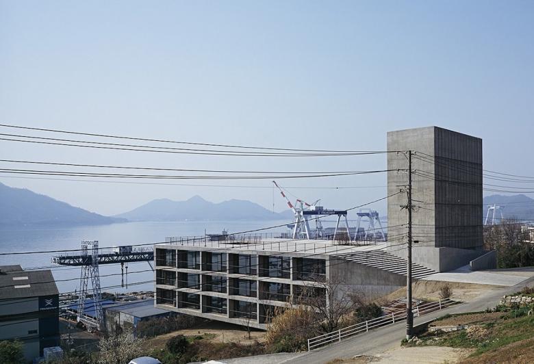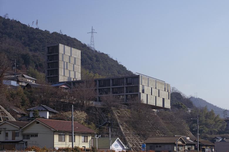 瀬戸内海に面するこの地域は、里山がそのまま海面へと落ち込んでいくような地勢で、街は斜面にはりつくように広がっている。当然のように平場は限られていて、街の人々が集い催しを行うようなパブリックスペースが圧倒的に不足していた。求められた用途である造船会社の社宅機能に加えて、われわれが実現を試みたのは、崖上の斜面地という敷地状況を逆手に取って、建築によってパブリックスペースをつくり出し地域に開くことである。