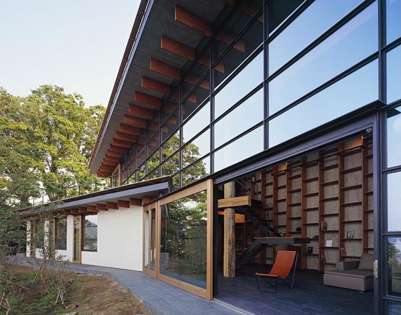 その豊かな自然環境の中での建築に際して、都市型の生真面目で自己完結的な秩序の導入は相応しくないように思えた。参考になったのは施主の趣味だというビーチコーミングの考え方である。浜辺に打ち上げられた様々な素材を、それらの性質や声を良く聞き取ることで、材がなりたい形に整えるように立体を組み上げていく。この時、秩序は絶対的な支配者というよりも、材や環境との関係によって次々に変容する動的でしなやかな存在である。求めるのはそのような「開かれた秩序」のあり方である。