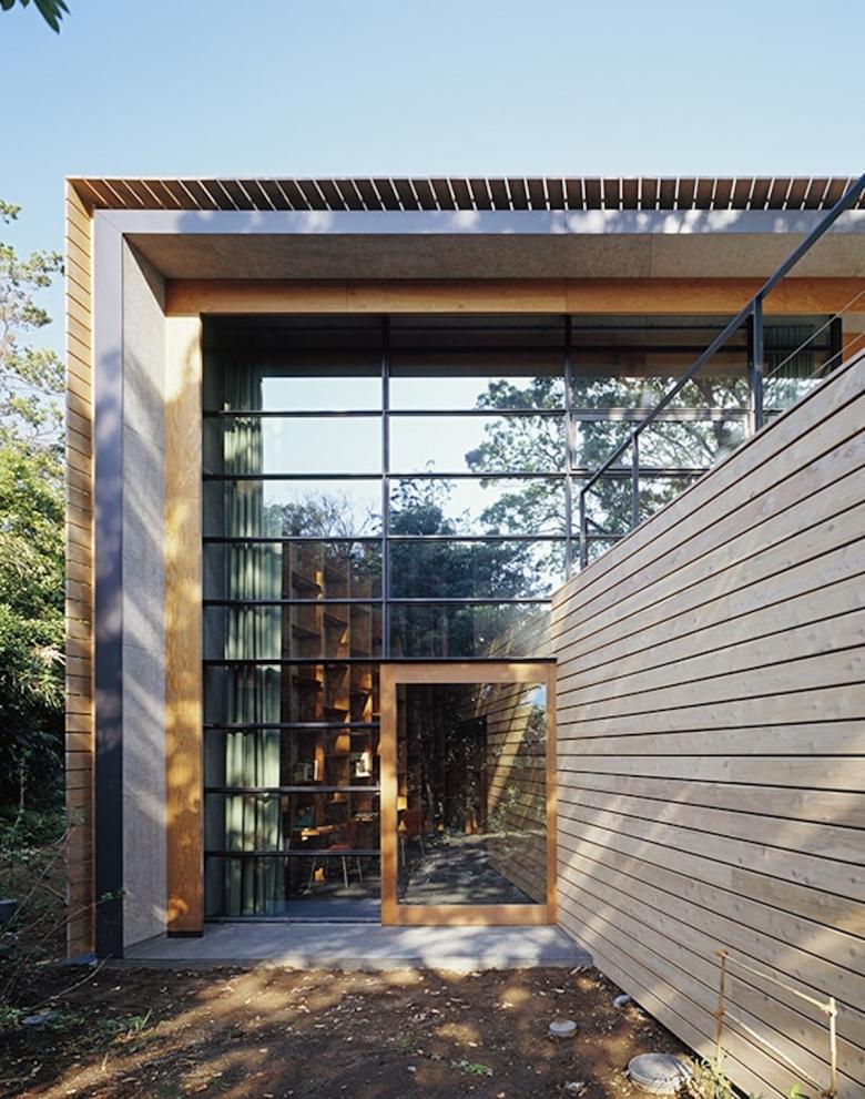 真鶴半島の付け根近く、南へ向かって下っていく丘陵地が、いったん勾配を緩める肩のような地形上に敷地はある。周囲を取りかこむ広葉樹を中心とした雑木林の向こうには、太平洋がおおきく静かに広がっている。ここに家族とその友人達が週末を過ごすゲストハウスを、というのが施主の希望だった。