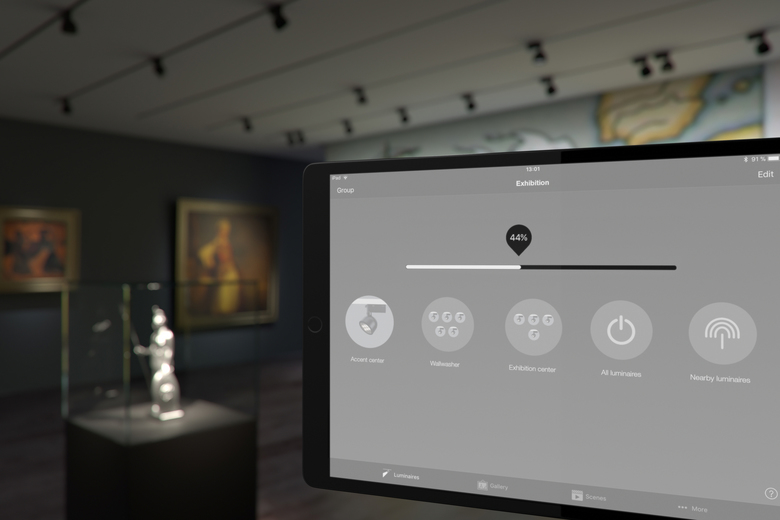 Individually switching and dimming luminaires, setting up light scenes and integrating sensors — all are made possible by the new wireless method of control offered by ERCO in the form of Bluetooth-capable luminaires. Only a smartphone or tablet with the