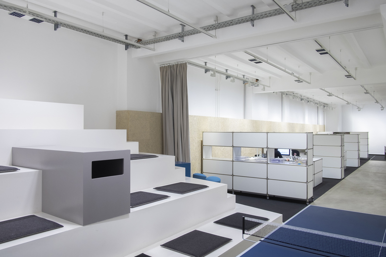 The cleanly designed loft office of communications agency mai public relations in Berlin-Kreuzberg has been upgraded with a new lighting solution from ERCO. Jilly downlights meet all the requirements of contemporary office lighting with LED technology....