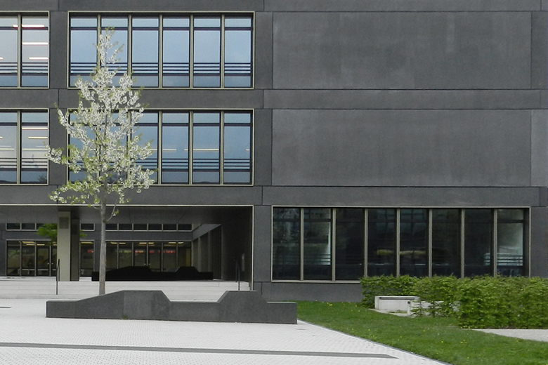 Die Außenanlagen für den Neubau der staatlichen Realschule gliedern sich in drei Bereiche, den durch das Gebäude gefassten Pausenhof, den linear ausgerichteten und kompakten Sportbereich, sowie den Vorplatz auf dem die Baukörper stehen. Der Pausenhof versteht sich als Kontinuum des Schulgebäudes. Die hell gepflasterte Fläche ist durch Plattenstreifen und Sitzgelegenheiten gegliedert, die sich aus dem Fassadenspiel ableiten. SolitärBäume markieren den Hof und die Freifläche. Umgeben ist die befestigte Pausenhoffläche von Aufenthaltsbereichen die durch Hecken gegliedert, dem Spiel, dem Lernen und der Erholung dienen. Die Sporthalle und Sportfelder grenzen alle an die Nordsüd verlaufende Erschließungsachse, die mit einer Baumreihe aus Säuleneichen gekennzeichnet ist. Der Vorplatz mit Eingangsbereich und Erschließungsflächen stellt sich als gepflasterte und funktional gegliederte Fläche den gestellten Anforderungen.