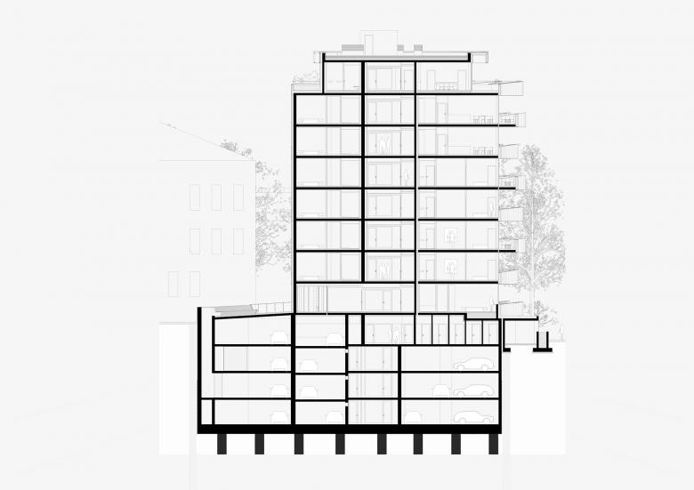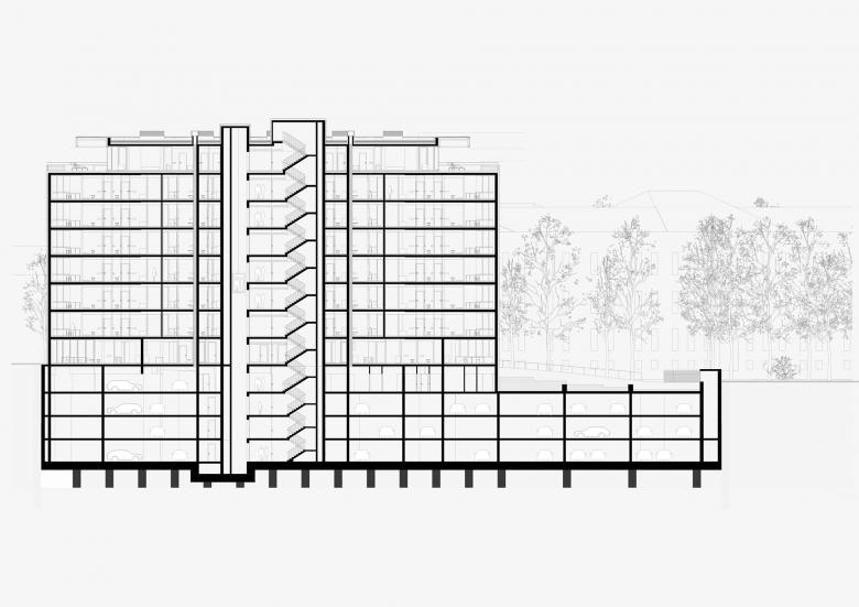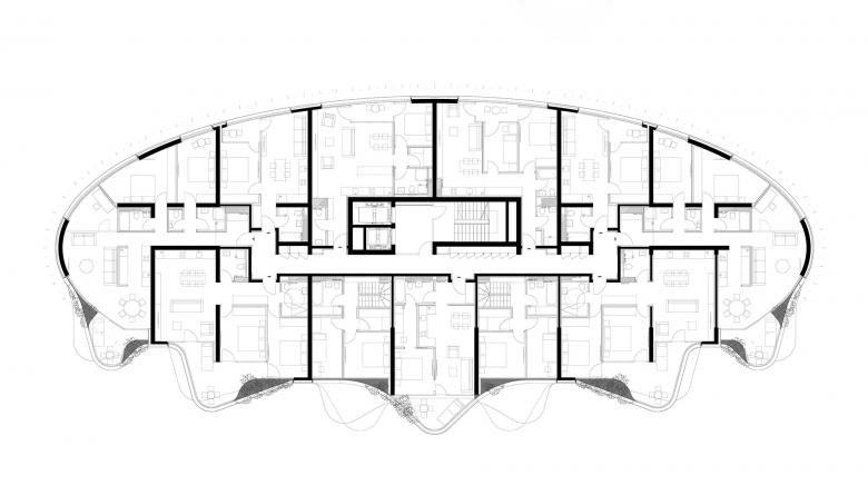 The Elipse is a 70-apartment building, with units differing in size, and connection to the outer space. The elliptical shape also allows for different typologies, from mini-lofts to duplexes and classic corridor-room apartments. The building's structural system provides a high level of adaptability for each apartment.