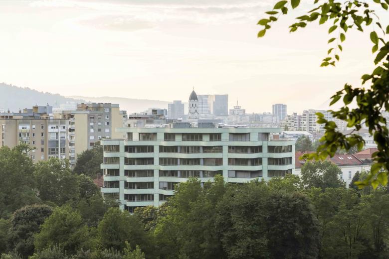 The Elipse, therefore, has an distinct dual character: the northern side of the building is calm and continental, the southern side is vivacious and Mediterranean. This duality builds on the reference to its position along the Fabiani inner ring and his placing of Ljubljana as a city, influenced by lavish Mediterranean outdoor living, as well as more rigorous Viennese residential architecture.