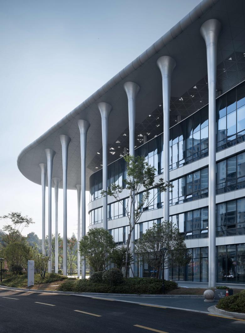 Although the building features gentle curvature at its ends and skylines, modular design is employed for the internal functional spaces. To achieve a futuristic look within a limited budget, the building's curvature was optimized multiple times, and the width of the facade lines was adjusted. This allowed the creation of a full steel structure hospital – meeting China's highest Three-Star Green Building standards – at the lowest possible cost.