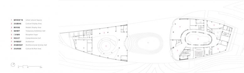 The programs of the project mainly include a museum, an urban planning exhibition center, office rooms, and cultural relics storerooms. Meanwhile, with consideration into the operation of this venue, the architects engaged in functional planning and positioning, and added some extra functions such as auditorium, book bar and cafe.