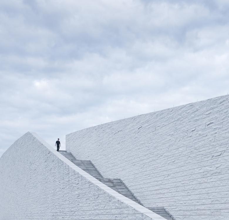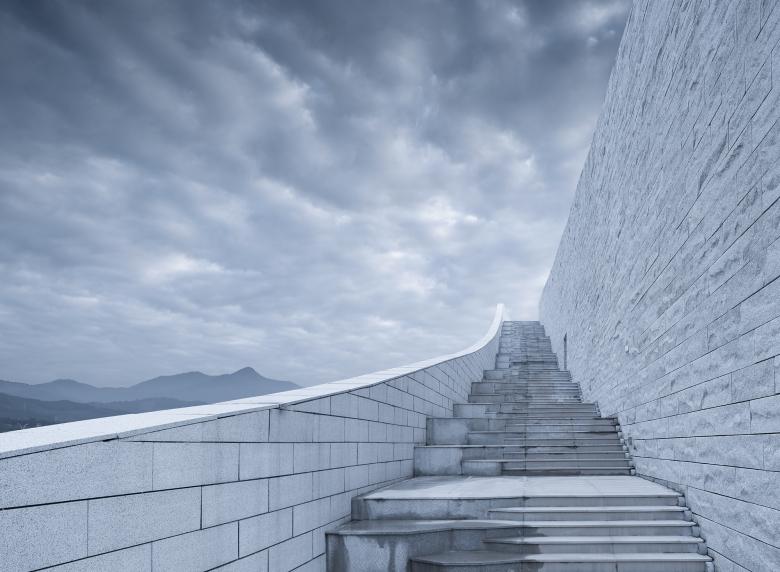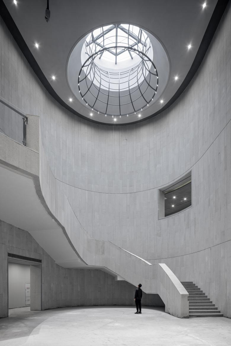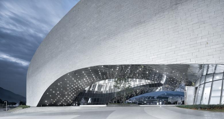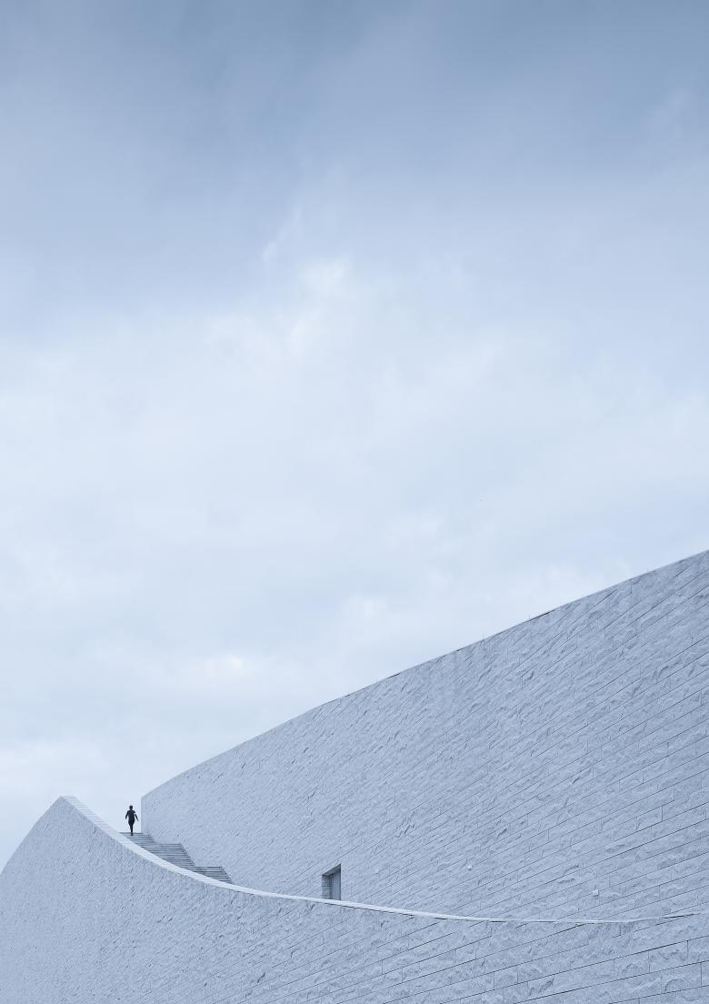 Simplistic and clean granite panels clearly outline the building’s curves. The arbitrary rough wall textures respond to the local mountains, revealing a unique charm between gracefulness and solidness.