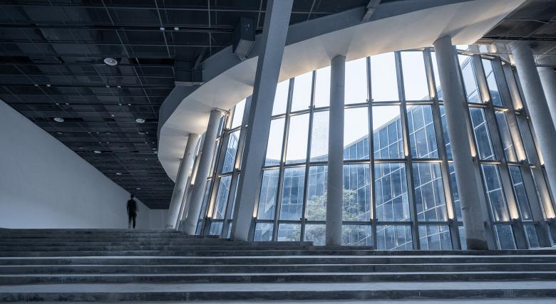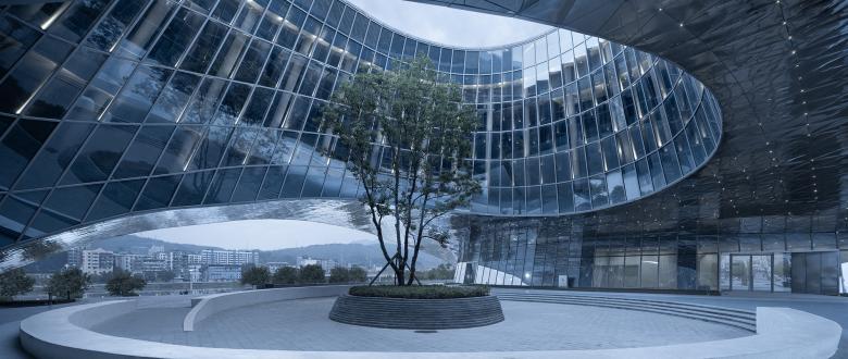 To maximize openness of the “urban living room” and introduce natural daylight into the open-air atrium, the building adopts frame-shear wall structure, and is supported by shear walls on both sides. Through curved trusses that span 48m, an open column-free space on the ground floor is created.