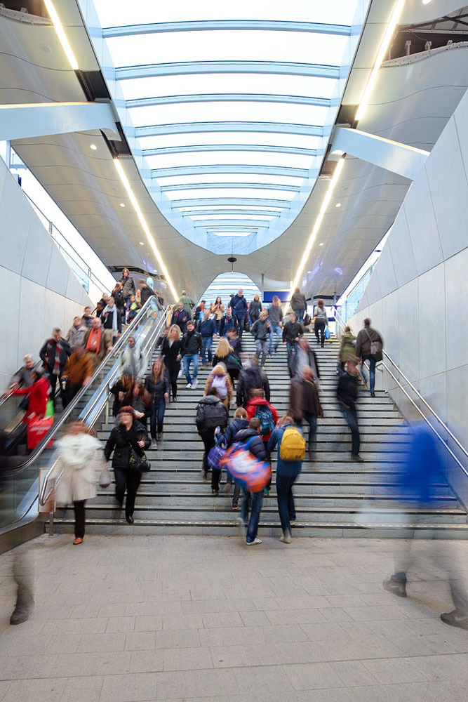 Arnhem Central converts several regional routes and high speed trains to Germany. As passenger numbers will continue to grow, the railway infrastructure is being substantially revitalized. On the train station level a new 4th platform will be added and all current platform roofs will be replaced. The design concept for the new platform roofs provides a sense of light and space. Large roof lights, which together with the structural spans, add to a positive experience of the transfer platforms and surroundings. The elevated footbridge is fully integrated in the design, connecting the different platforms with each other and with the north entrance of the train station. The electrified system has also been integrated into the roof structure, giving a uniform appearance across all platforms.