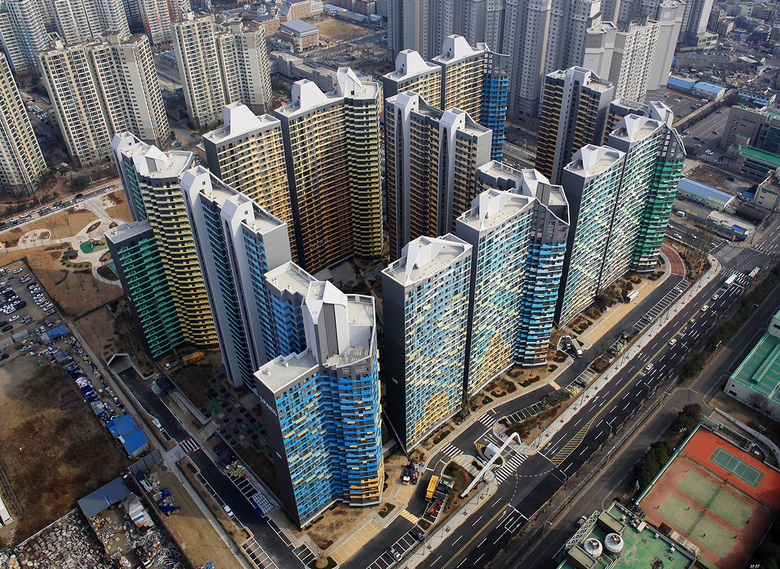 Following its implementation as a result of the rapid urbanisation of the booming middle class in South Korea, apartment living continues to be the most popular type of housing in the country. In cities across South Korea this type of housing can be found stacked in identical, densely packed, utilitarian blocks.