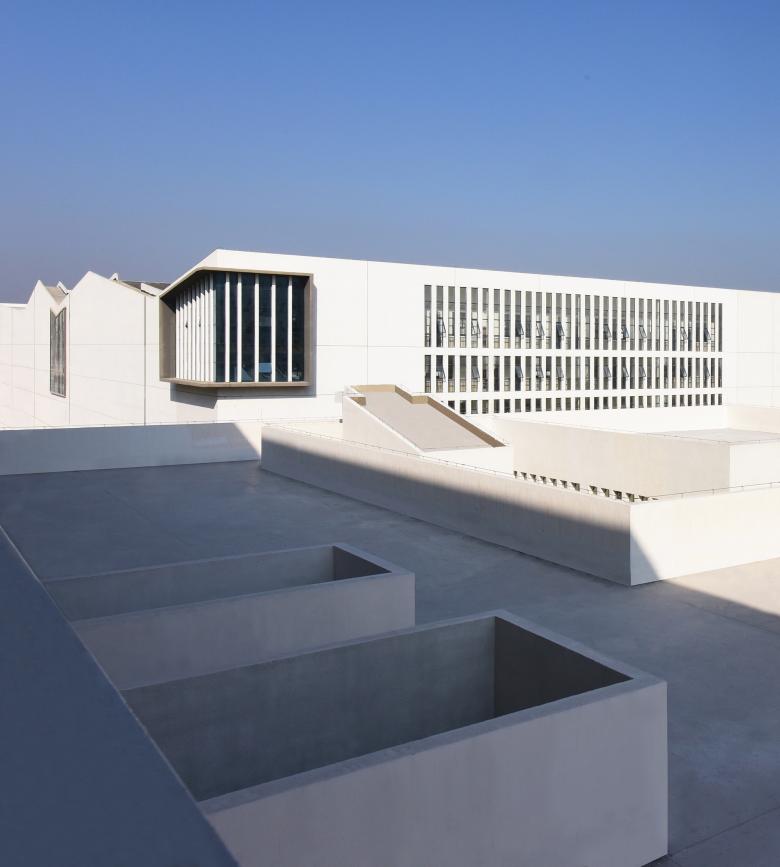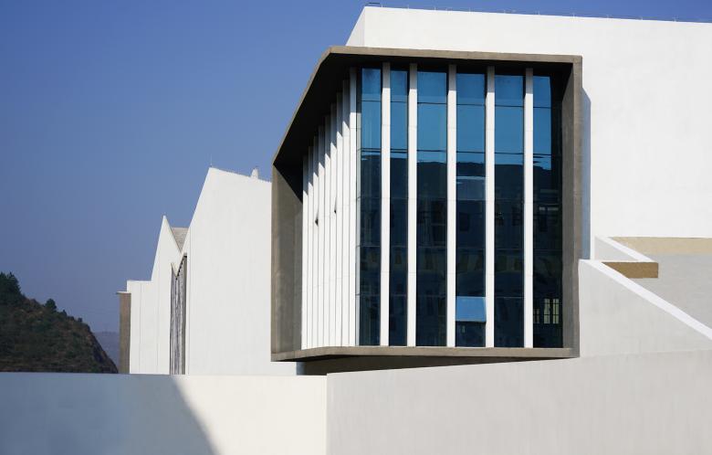 Materials are clear and simple, only cement mortar and white painting on outer walls, where shadows get strong and sharp. Considering local construction workers' lack of skills and a very limited selection of local materials, architects opted for a material selection that could ensure good quality and easy to control results.