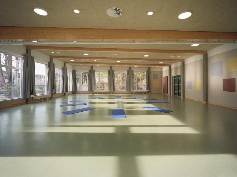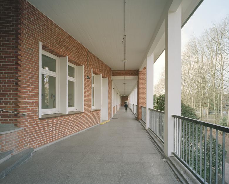 Die bestehende Pausenhalle wurde zur Mensa mit Vitalküche umgebaut, während die neue Pausenhalle als soziales Zentrum dient. Besonderer Wert wurde auf den Erhalt der prägenden Backsteinfassaden und der Bestandsstruktur gelegt. Farb- und Materialkonzept knüpfen an die Architektur der 1950er- und 1960er-Jahre an und verbinden Bestandsgebäude und Neubauten zu einem stimmigen Ensemble. Innen sind helle und offene Räume entstanden, die Kunstgalerie in den Wandelgängen bietet Fläche für die Werke der Schüler:innen.