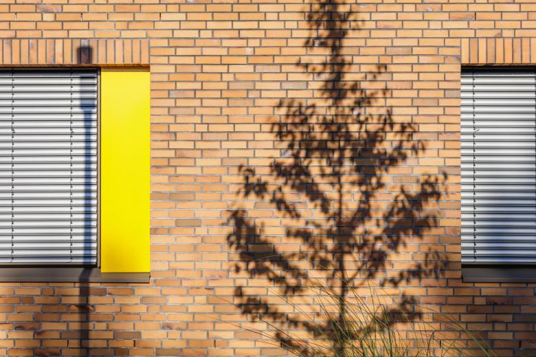Mit dem Neubau der Grundschule Zeven ist ein Bildungsort entstanden, der so bunt und einladend ist wie seine Schulgemeinschaft. Der Neubau fügt sich harmonisch in die kleinteilige Nachbarschaft ein und öffnet sich zur Straße mit einem freundlich gestalteten Willkommenshof rund um einen Baum mit Sitzbank – ein Ort zum Ankommen und Verweilen.