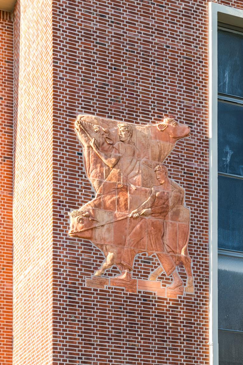 In enger Abstimmung mit dem Denkmalschutzamt, Bauphysikern und Statikern wurde die zweischalige Klinkerfassade umfassend instandgesetzt. Die ursprünglichen Fassaden wurden vorsichtig freigelegt, Fehlstellen mit passenden Steinen von Hand ausgebessert und das gesamte Fugennetz erneuert. Die künstlerischen Reliefs von Ernst Hanssen am Haupteingang wurden sorgfältig restauriert. Firmenlogos und Reklametafeln fügen sich dezent ein und lassen der beeindruckenden Fassade den Vortritt.