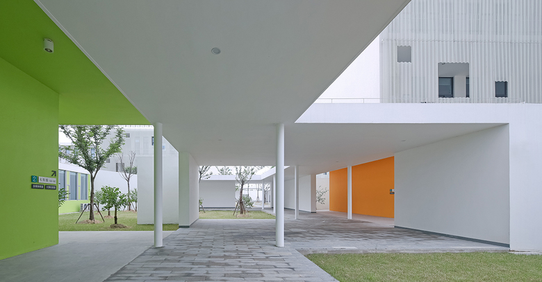 The platform of the 1st floor is built with concrete slab, which is sustained by several enclosed rooms detached from each other, leaving the ground floor a free plan for publicactivities, suitable for all weather conditions. These public space flexibly runs in betweenthe specialized classrooms and connects the courtyards within that project, making the ground level space a whole integrated with different courtyards. Inside the walls are tranquil places for study. Outside the walls, openings between courtyards are enclosed in favor of a variety of sporting. Walls facing them constitute the open and tortuous verandas which lead to other spaces. Upstairs and downstairs, pupils assiduously crack their books. Inside and outside the walls, the peaches and plums vie in blossoming. The plantation echoes with the endemic schools as well. This is a real campus, as far as the implication of Yuan (garden) is concerned. Meanwhile the project intends to, with the reference to the notion Yuan, reestablish the tradition of poetic space in Jiangnan region.